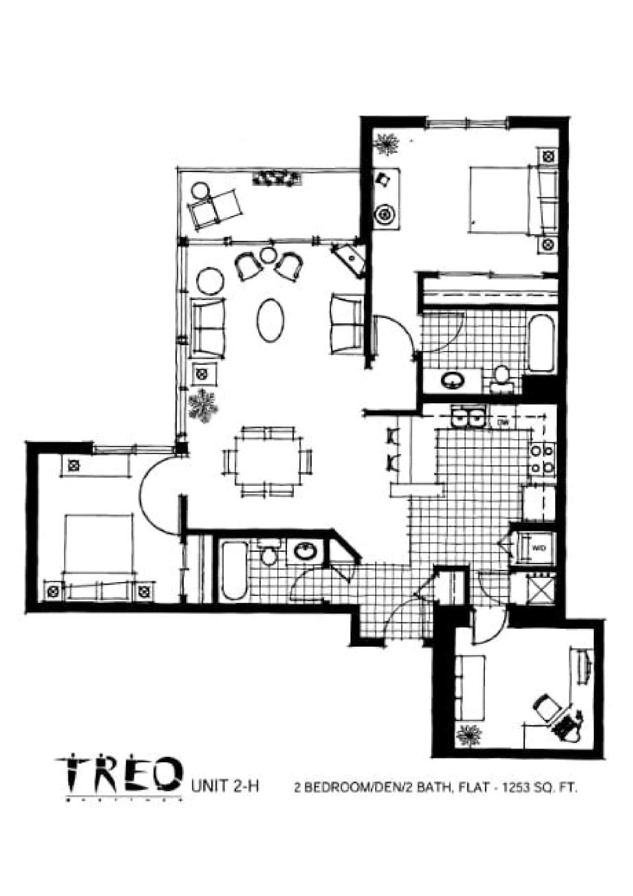 2 Bedroom/Den | 2 Bath | 1253 Sqft Living Space