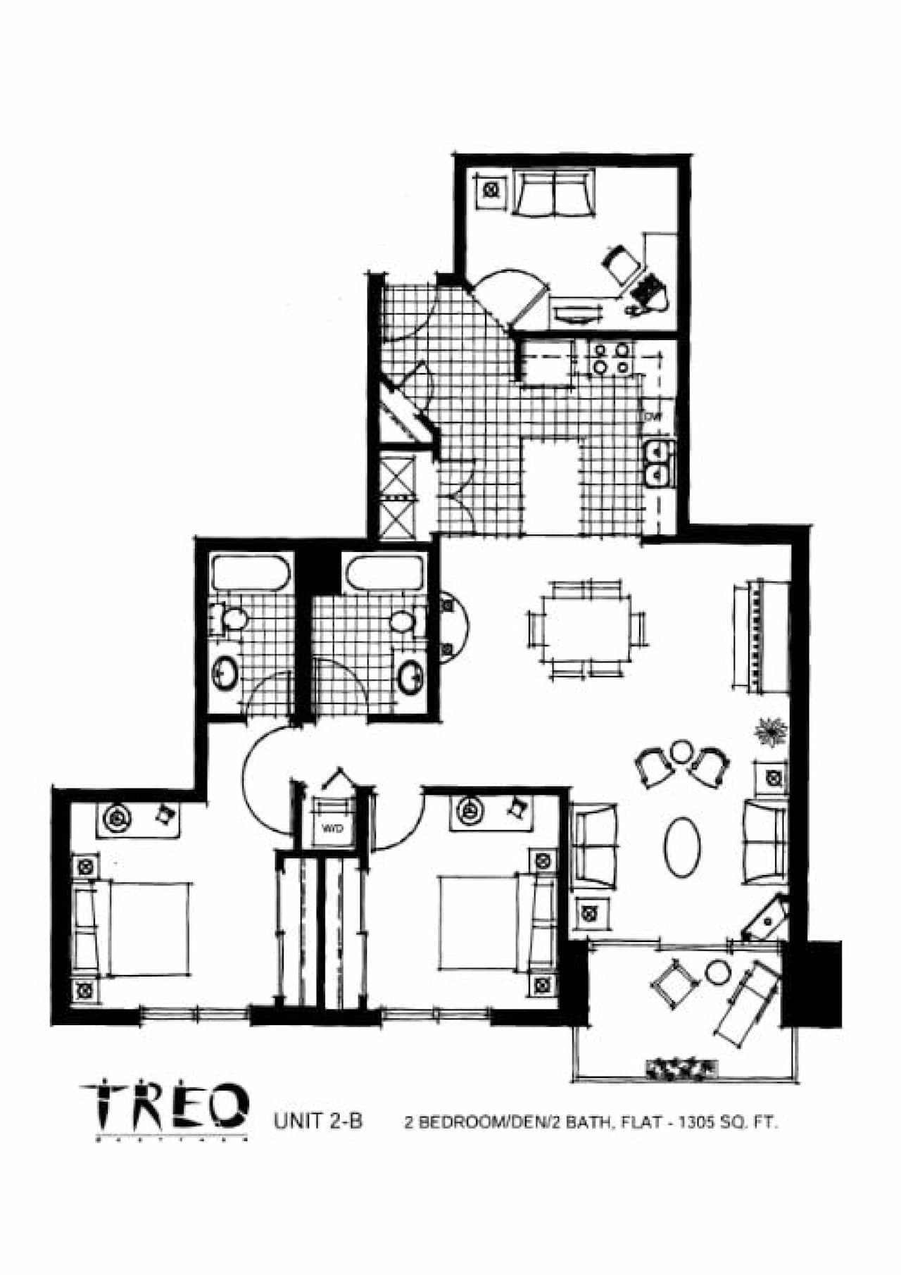 2 Bedroom/Den | 2 Bath | 1305 Sqft Living Space