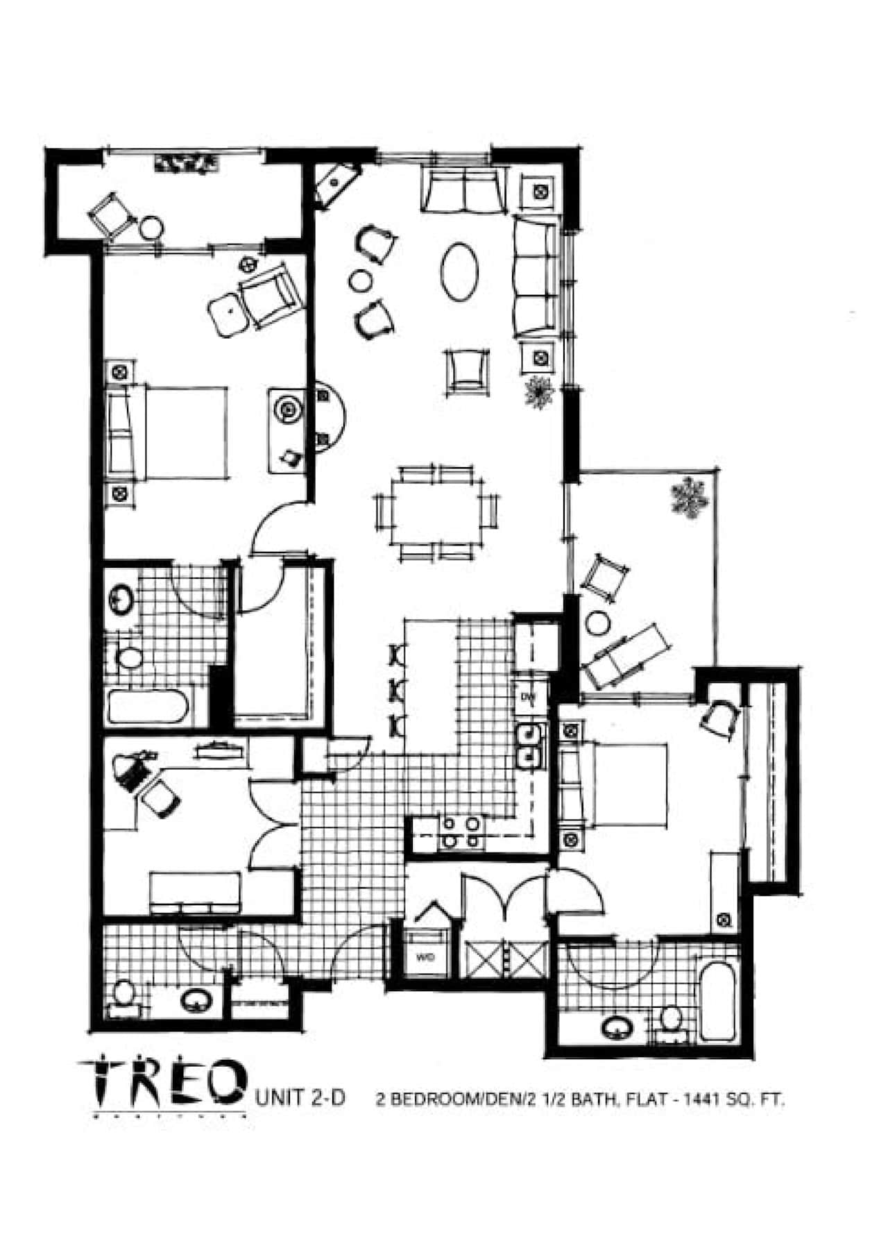2 Bedroom/Den | 2.5 Bath | 1441 Sqft Living Space